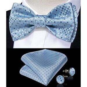 【Complete Pocket Square Set】Paisley floral self-bow tie, woven pocket square, matching cufflinks, box.Crafted from colorfast fabric that coordinates seamlessly with suits and tuxedos for weddings, galas, or black-tie events