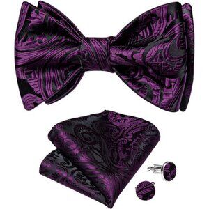 【Complete Pocket Square Set】Paisley floral self-bow tie, woven pocket square, matching cufflinks, box.Crafted from colorfast fabric that coordinates seamlessly with suits and tuxedos for weddings, galas, or black-tie events