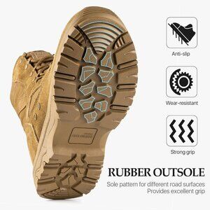 WATERPROOF & WARM The waterproof membrane inside the boots for men seals out water and allows moisture to escape, providing a static waterproof capability for up to 4 hours. These tactical boots ensure your feet stay dry in light rain or damp environments. With gusseted tongues that shield against wind and snow, and thick insulated high-tops that lock in warmth ,these mens work boots suitable for all seasons