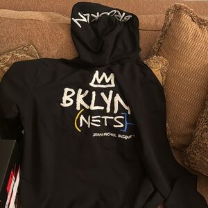 Men's Brooklyn Nets New Era Black 2022/23 City Edition Elite Pack Pullover Hoodie. Out of stock everywhere. Brand new never worn. Jean-Michel Basquiat edition with patches down the sleeve and embroidered hood. With tags XL