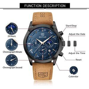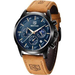 COMFORTABLE AND DURABLE: When you need a quality analog quartz watch men to prove that you value your time and enhance your taste. BENYAR brown leather band watch for men not only makes a comfortable sense for your wrist but also easy to match your outfit. Our men's wrist watches are suit for both the adventurer and the everyday man looking for a stylish style. Our passion drives us towards perfection, putting in hours of work to get a truly amazing and unique end product.