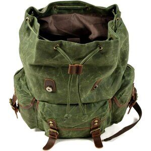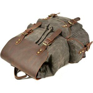 ✨ Men Brown Leather Backpack Waxed Canvas Shoulder Rucksack Travel Backpack