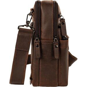 💫 Men Brown Leather Sling Small Messenger Pack Genuine Detachable Shoulder Bag