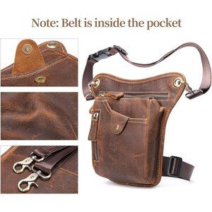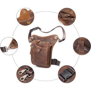 Durable & Vintage Leather Drop Leg Bag: This leg bag is crafted from genuine cowhide leather with top-quality zippers, adjustable straps, and a quick-release buckle. It's ideal for motorcycles, bikes, riding, cycling, travel, outdoor sports, hunting, hiking, tactical military use, running, fishing, walking, jogging, camping, various outdoor activities, and daily use.