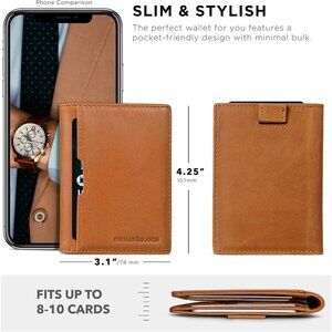 Men Brown Slim leather RFID Blocking Minimalist Card Front Pocket Wallets