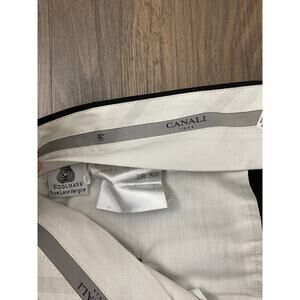 This listing is for a pair of men's Canali pleated and cuffed wide leg dress pants. Made in Italy. Size 38 (see below for exact measurements) and made of 100% wool. Used and in good condition. If you have any questions please do not hesitate to ask and thanks for looking :)