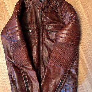 Men Distressed Brown Motorcycle Leather Jacket - Best Leather Riding Jacket Med