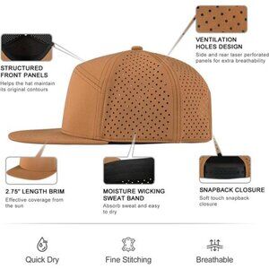 High Performance: Flat brim to keep out of the sun, structured front panels and mid crown to maintain shape; Laser cut holes ensures your head breathable, classic adjustable snapback closure to let your head fit better