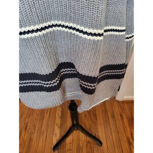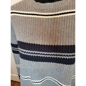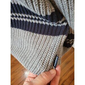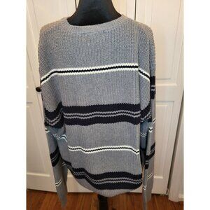 Men Gray/Navy Stripe Chunky Cable Knit Sweater XXL Academia Preppy Nautical