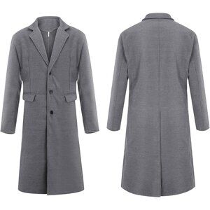 ✨Men Grey Casual Trench Coat Slim Fit Notched Collar Long Jacket Pea Overcoat
