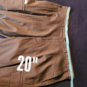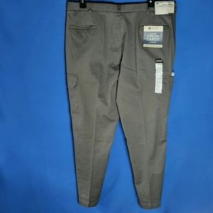 These Haggar Clothing Classic Fit Stretch Cargo Pants offer a comfortable and versatile design, featuring a hidden expandable waistband for a flexible fit. Crafted for both style and functionality, they provide a classic fit with plenty of room for movement. While the listed color is Medium Grey, they appear green in person and in photos. Perfect for casual or workwear, these cargo pants combine practicality with a polished look.