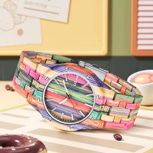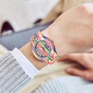 Men Handmade Colorful Bamboo Analog Quartz Wooden Watch