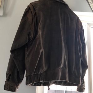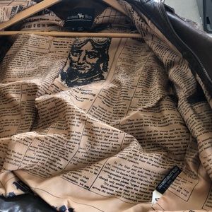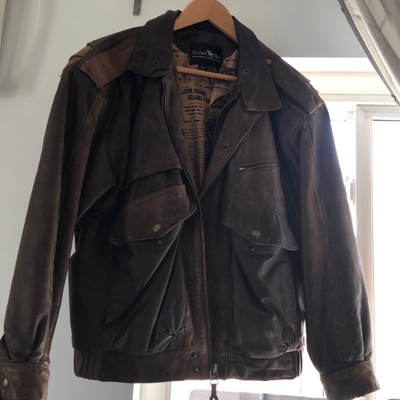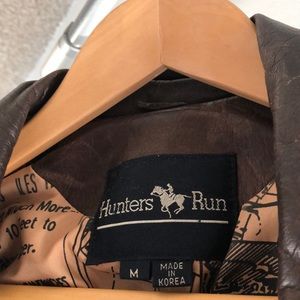 Men jacket, pre-owned, still in good condition only the color changed a little, VTG Hunters brown leather jacket newspaper lining made in Korea, Size “M” VTG, made in Korea