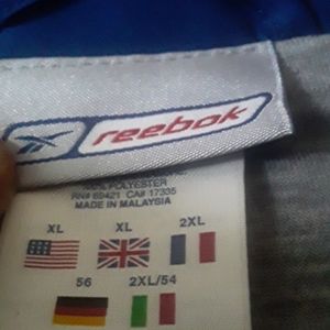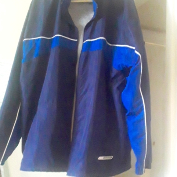Men Reebok line jacket. Two tone blue with white accent on sleeve and front. Nice jacket for season. Grey lining.