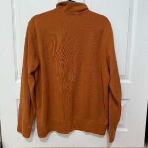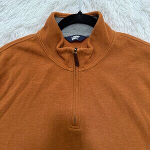 Men Lands End Quarter Zip Cotton Blend Sweatshirt Burned Caramel Size Large