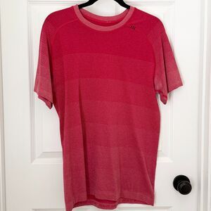 Men Lululemon Metal Vent Short Sleeve Striped Slim Fit in Red Size Medium
