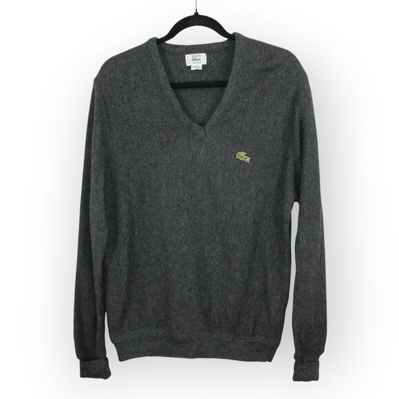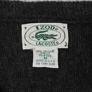 Men M Vintage IZOD LACOSTE Sweater MADE IN USA Charcoal Orlon V-Neck