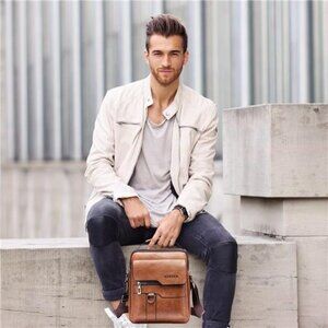 Men Messenger Bag Small Crossbody Shoulder Satchel Vintage PU Leather Bag