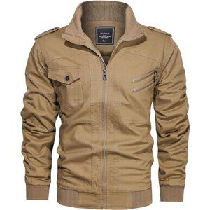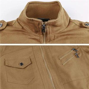 Men Military Jacket Cotton Utility Coat Cargo Bomber Stand Collar Multi-Pocket