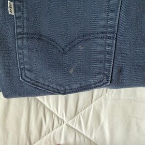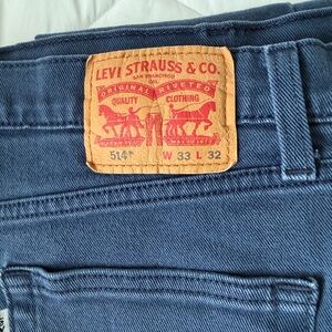 Stylish Levi's straight leg jeans. Dark blue hue. Perfect for versatile wear.