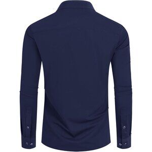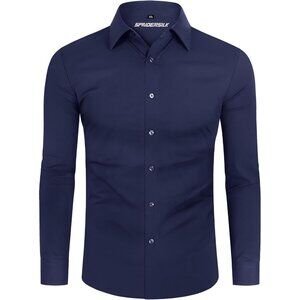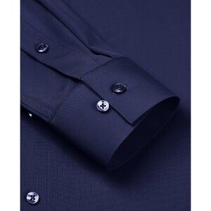 Men Navy Long Sleeve Slim Muscle Fit Wrinkle Free Button Down Dress Shirts