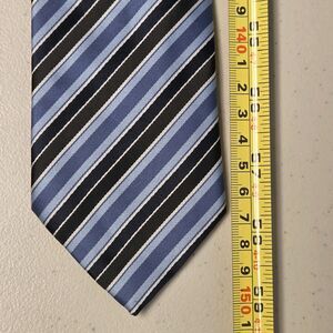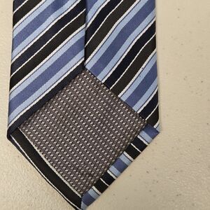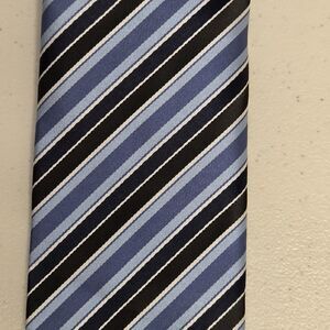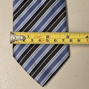 The Men's Necktie by Alexander Julian colours in Blues and Dark Gray Striped is a classic accessory for men, featuring a timeless striped pattern and a touch of blue character. Made from high-quality polyester, this 59"x3" tie allows for a stylish and sophisticated look. Perfect for a wedding or preppy style, this tie is a must-have for any man's wardrobe. Designed by a reputable brand, Alexander Julian, this tie is a versatile piece that can be easily paired with different outfits for various occasions.