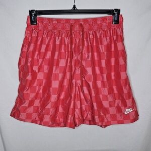 Men Nike FN3098 Club Flow Shorts University Red Drawstring Pockets Check Nylon M