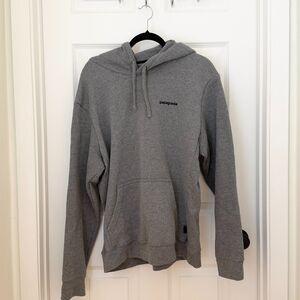 Men Patagonia Logo Graphic Print Relaxed Fit Hoodie in Medium Gray Size Large