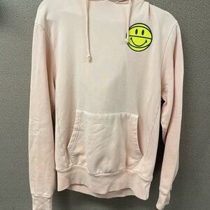 This bright light orange hoodie showcases a cheerful smiley face graphic on the back, perfect for adding a pop of color to your casual outfits. Its oversized fit offers a comfortable and relaxed style, ideal for everyday wear.