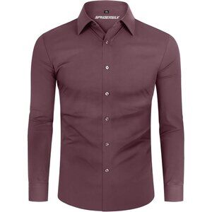 Men Pink Long Sleeve Slim Muscle Fit Wrinkle Free Button Down Dress Shirts