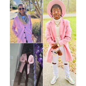 ✨Men Pink Wool Blend Pea Coat Notched Collar Single Overcoat Warm Trench Coat