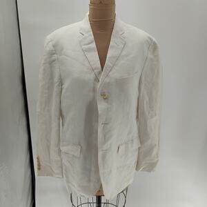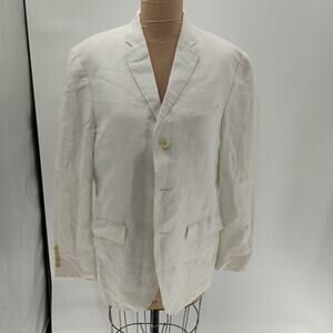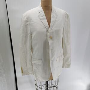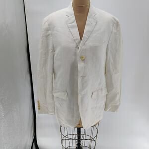 Men Polo Ralph Lauren White Linen Three Button Blazer Sport Coat Jacket flax