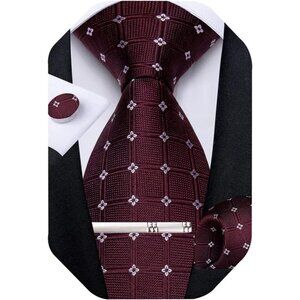 🆕Men Purple Plaid Silk Checkered Necktie Pocket Square Cufflinks Tie Clip Set