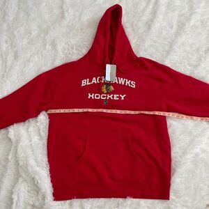 Men Reebok Blackhawks Red Hoodie Size: XL Color: red Approximate lay flat measurement: Pit to pit: 20 inch Armpit to bottom: 17 inch Full length: 35 inch Fabric: 80% cotton 20% polyester Condition: BNWT No stains/ holes/ defects