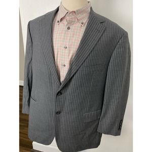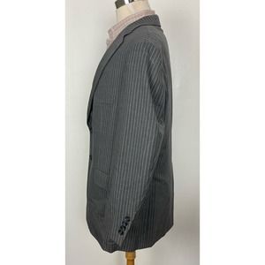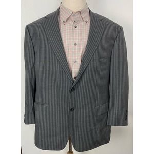 This listing is for a men's Samuelsohn Super 110s stripe 2-button blazer. Size 44S (see below for exact measurements) and made of 100% wool with an acetate lining. Very lightly used and in great condition! If you have any questions please do not hesitate to ask and thanks for looking :)