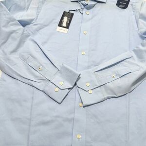 Men Savile Row Casual Button Down Shirt Slim Fit in Light Blue Size 16