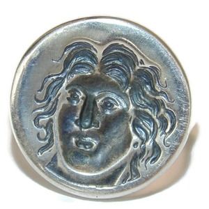 Type: Artisan Made Carved Image of Rhodes Coin Helios Colossus Signet Stamp Seal Ring