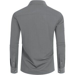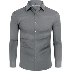 Men Silver Long Sleeve Slim Muscle Fit Wrinkle Free Button Down Dress Shirts