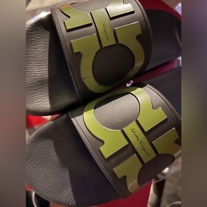 Ferragamo Slides. Few scratches on the top by the logo. Overall in very good condition