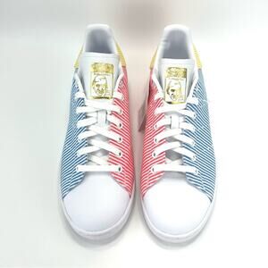 🐢 Men Sneaker Size 10 Adidas Stan Smith Pride Love Unites Special Edition Laced White Leather Blue Pink and Yellow Textile Low-Top Embroidered FY9021 New.