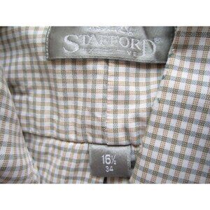 Men Stafford Gingham Button Cotton 2 Ply Long Sleeve Shirt Sz 16.5-34 (MT360)