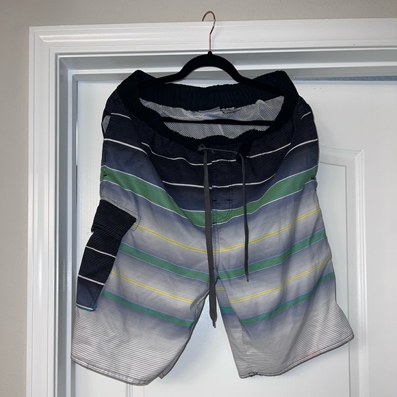 Men swimming trunks. Two pockets and one extra deep pocket on leg.