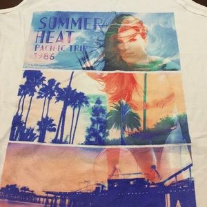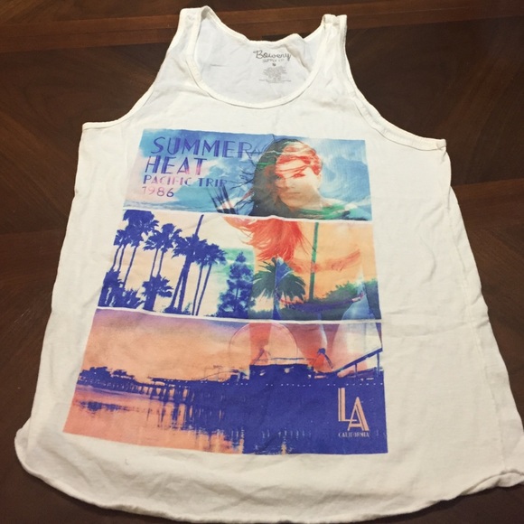 White with print on the front tank -- worn few times , excellent condition .. No damage ..
