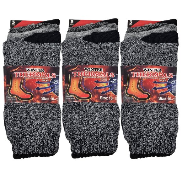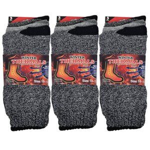 Men Thermal Socks, Warm Winter Crew, Heavy Duty Book Sox, Size 10-13, 9 Pairs