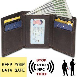 * MATERIAL: Full grain crazy-horse leather. Equipped with advanced RFID SECURE Technology, made of a unique metal composite, engineered specifically to block 13.56 MHz or higher RFID signals and protect the valuable information stored on RFID chips from unauthorized scans.