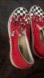 Bold red sneakers with a striking flame and checkered design. Easy slip-on style for active wear