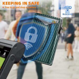 SECURITY-Full RFID blocking,solid built to against drop test by accident in use,it is a functional wallet with slim size for you to go anywhere.
