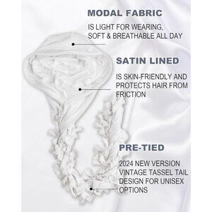⚡Men Women 1 Pcs- White Satin Head Wraps Skull Cap Tassels Braid Beanie Turban