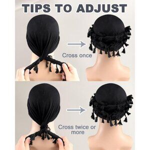 ⚡Men Women Colorful Tassel Black Satin Head Wraps Skull Cap Braid Beanie Turban