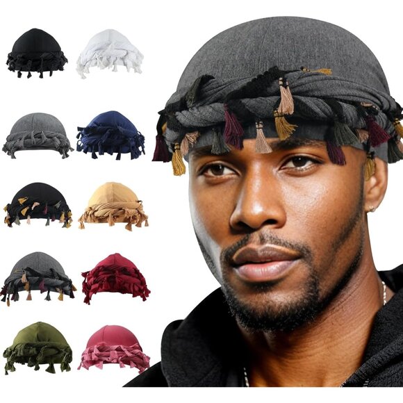 Quality Workmanship Material Made from premium, soft, stretchy, and durable fabric that does not deform or emit odors. The vintage elastic beanie cap circumference is 21.25" and more, suitable for most head sizes. The satin-lined hair turbans have a pre-tied braids tail that is 36.22" in circumference, and are also ideal for various hair wrap styles. This African men's head wrap keeps your hair in place while keeping you cool and comfortable.